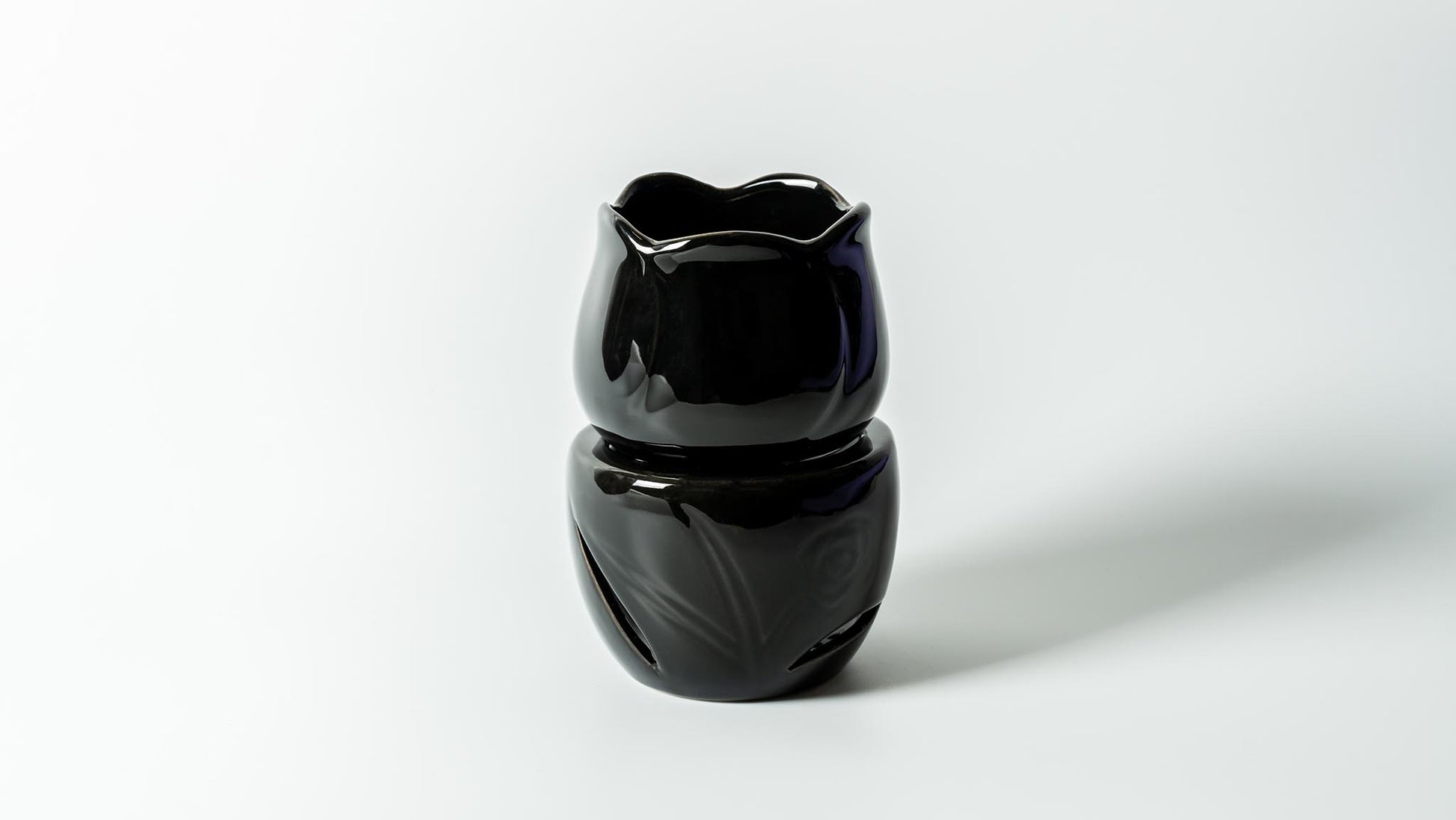 Αρωματιστής για wax melts σε μαύρο χρώμα με σχέδιο τουλίπας σε δύο μέρη.