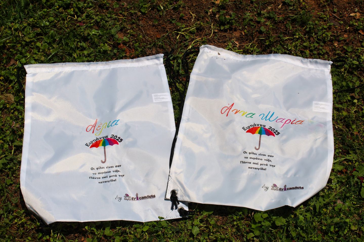 Προσωποποιημένες τσάντες πλάτης δραστηριοτήτων με το μήνυμα και το σχέδιο της επιλογής σας, αναγράφουν όνομα, ημερομηνία, το λογότυπο ή το σχέδιό σας. Ειδικές τιμές για παραγγελίες άνω των 10 κομματιών, επικοινωνήστε μαζί μας.