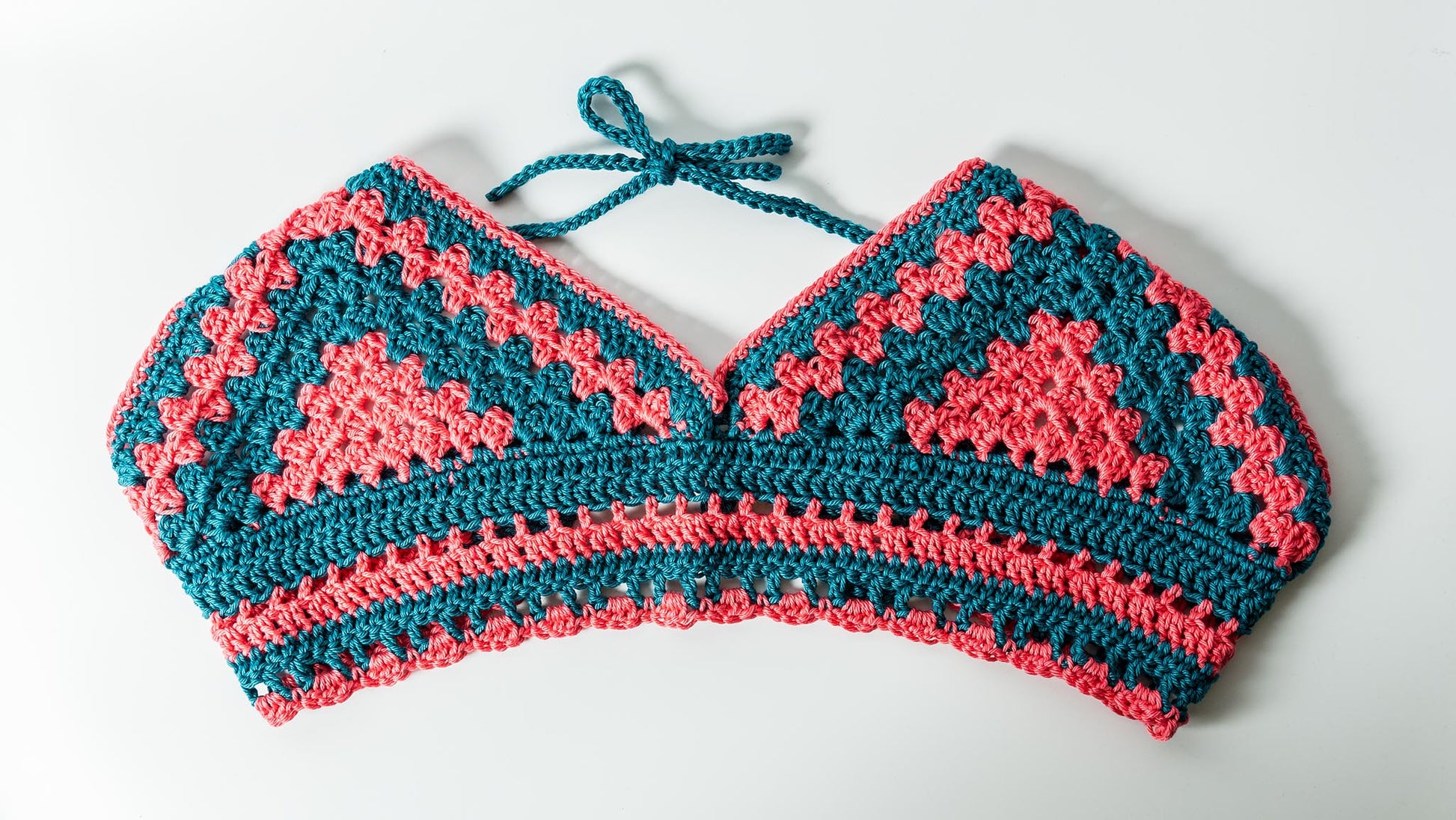 Χειροποίητο πλεκτό μπουστάκι με κορδόνι για δέσιμο.
