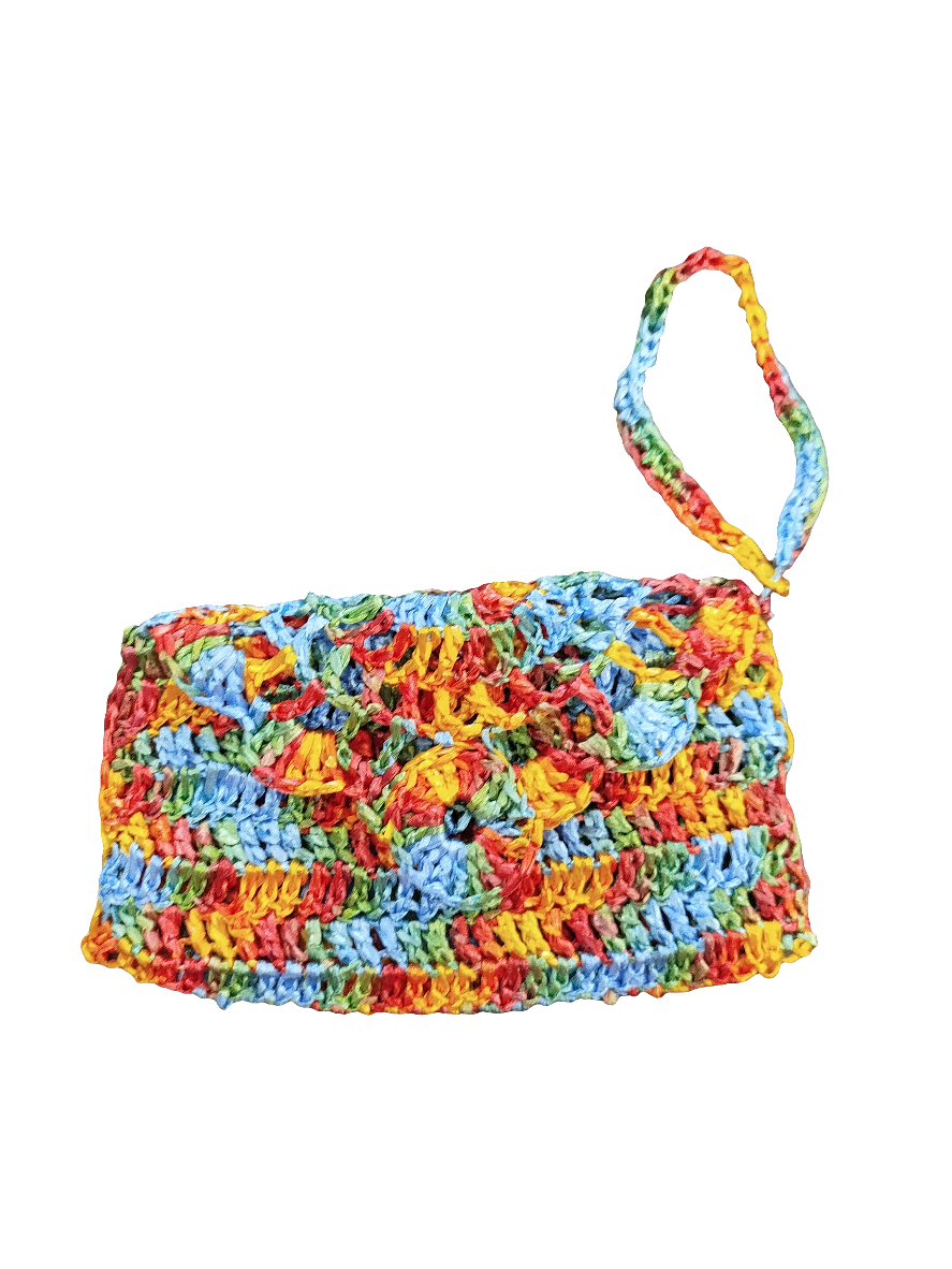 Χειροποίητο πλεκτό ψάθινο τσαντάκι πολύχρωμο.