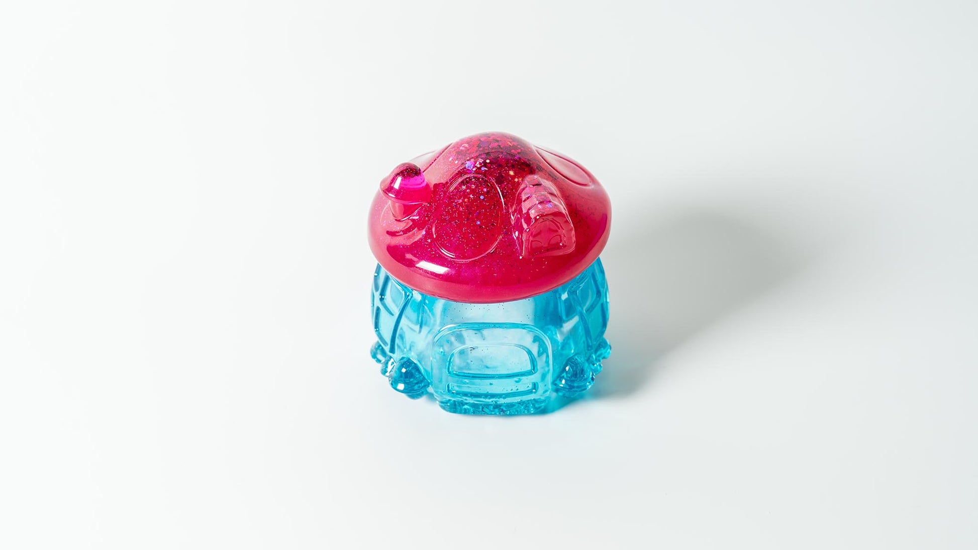 Χειροποίητο μπολ σε σχήμα μανιταρόσπιτου από υγρό γυαλί σε αποχρώσεις γαλάζιου και ροζ με γκλίτερ. Διατίθεται και σε άλλα χρώματα κατόπιν παραγγελίας με χρόνο παράδοσης 1 εβδομάδα.
